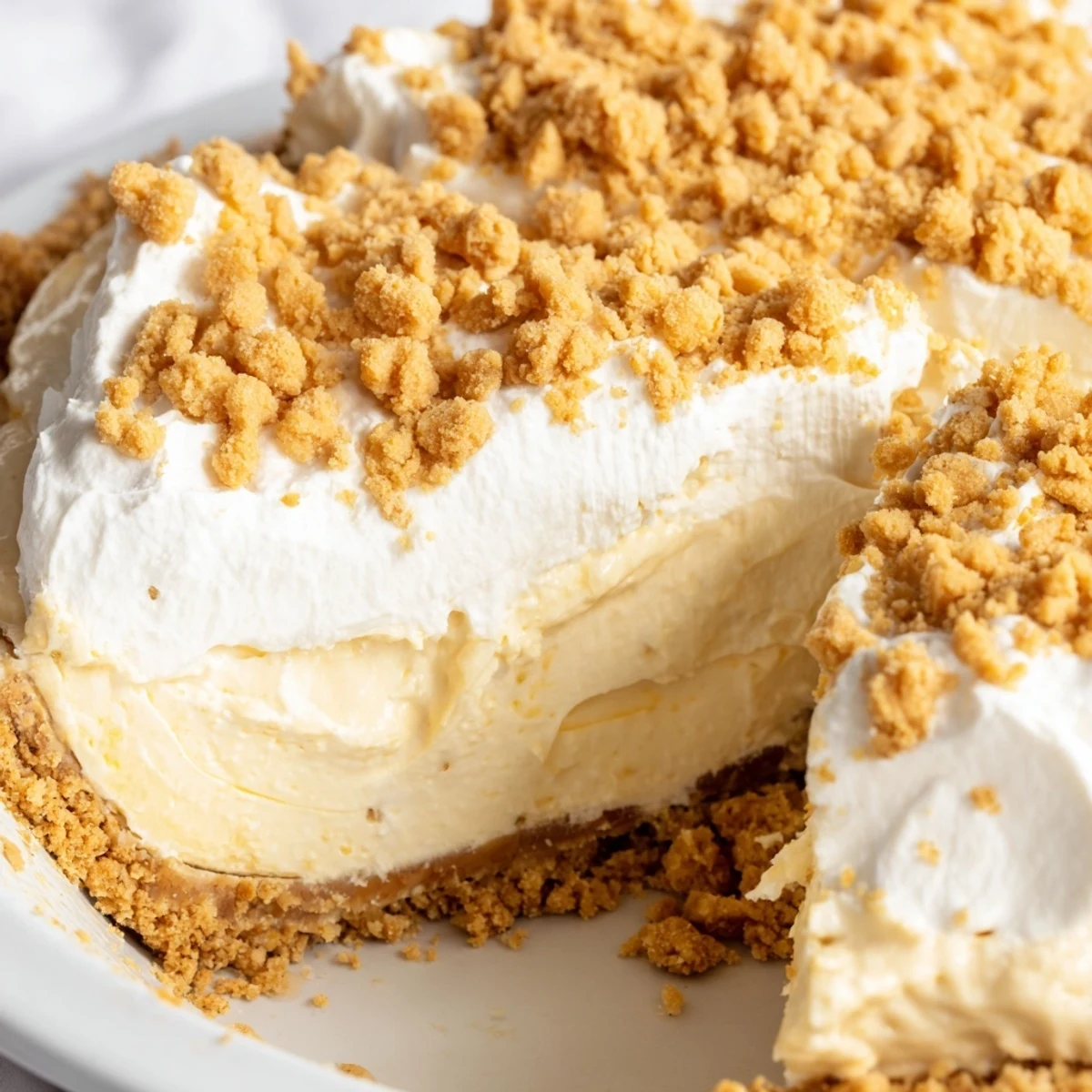 - Whip the cream with the powdered sugar and vanilla until stiff peaks form, then spread it over the chilled pie and sprinkle with remaining crumbs.