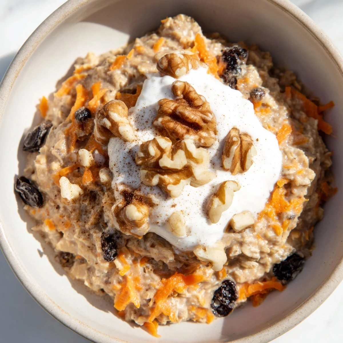 Finely grated carrots incorporate seamlessly into the oats, providing sweetness and moisture without detectable texture. Larger shreds can feel overwhelming and unpleasant in the smooth mixture. Use the fine side of a box grater or food processor for best results.