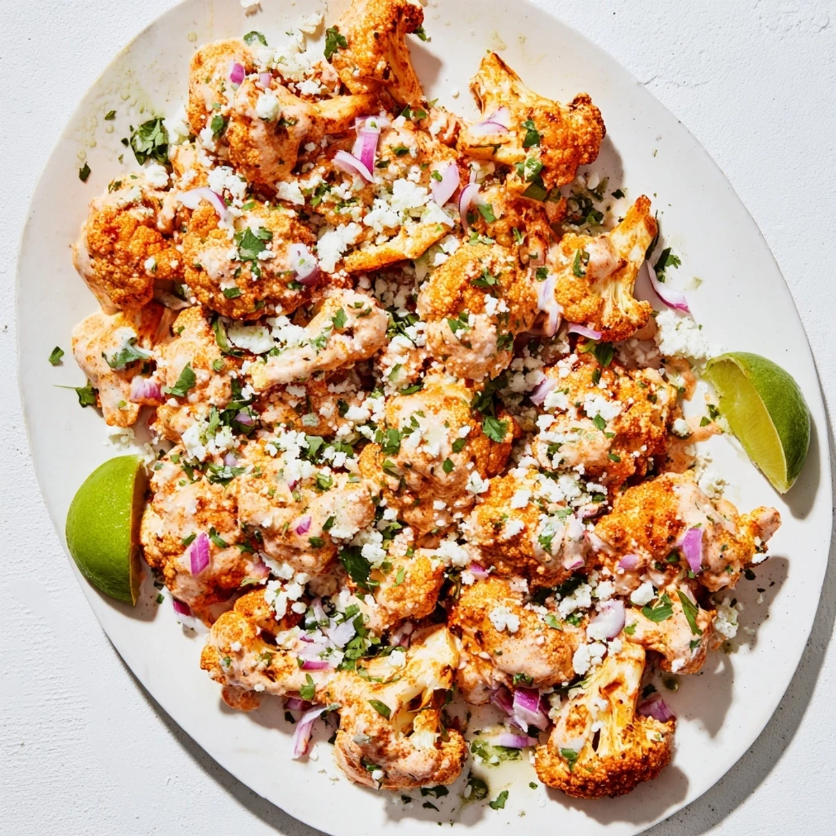 Yes, feta makes an excellent substitute for cotija cheese. Both are salty, crumbly, and add that essential tangy element. Just crumble it generously over the sauced cauliflower while still warm so it melts slightly.