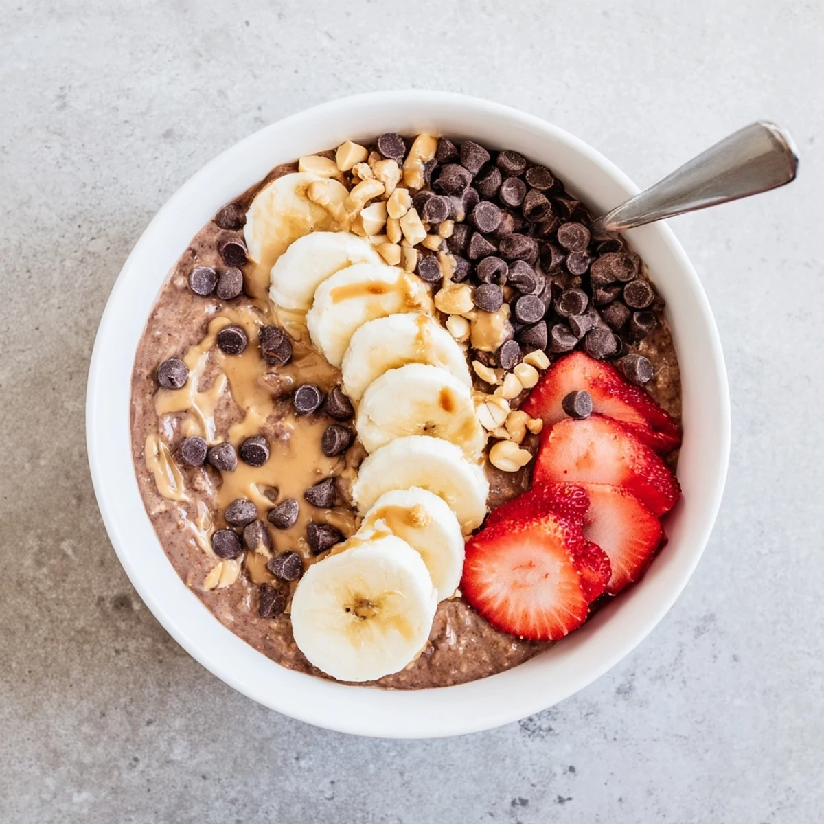 - Top with whatever makes you happy: chocolate chips, chopped peanuts, sliced bananas, or all of the above if you're feeling extra.