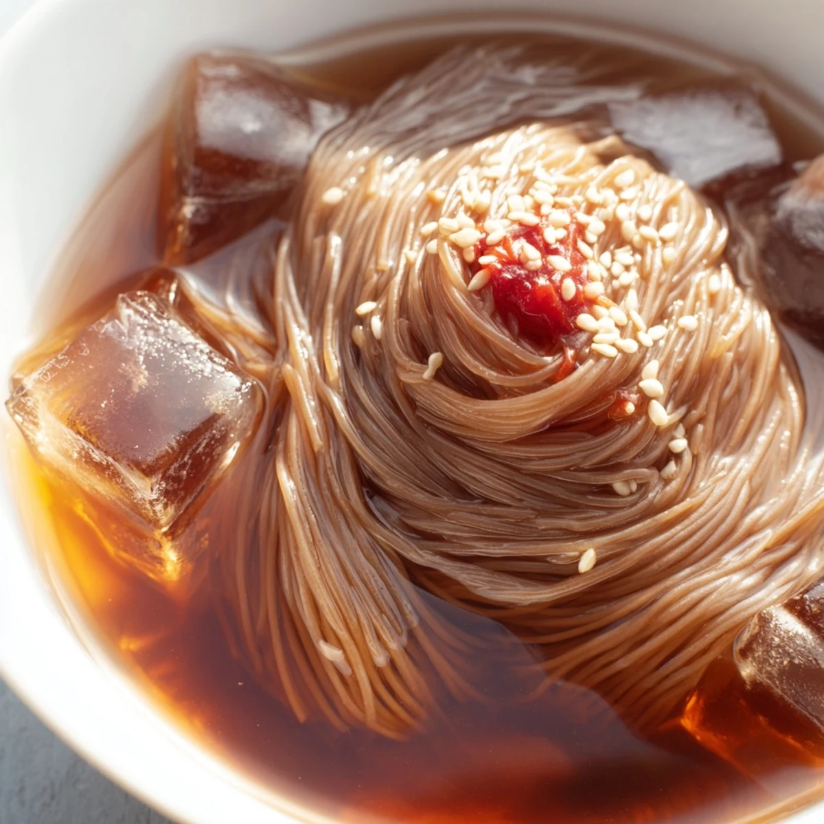 The ice-cold temperature is absolutely essential to the authentic naengmyeon experience. The broth should be thoroughly chilled in the refrigerator before serving, and adding ice cubes directly to the bowls is traditional. This extreme cold enhances the refreshing quality and balances the tangy, savory flavors. Some enthusiasts even freeze portions of the broth to add as ice cubes instead of regular ice.
