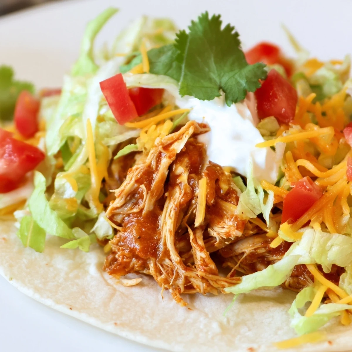 Beyond the classic garnishes, try pickled red onions, sliced radishes, crumbled cotija cheese, roasted corn, or even a drizzle of chipotle crema. The mild, flavorful chicken pairs well with both fresh and spicy toppings.