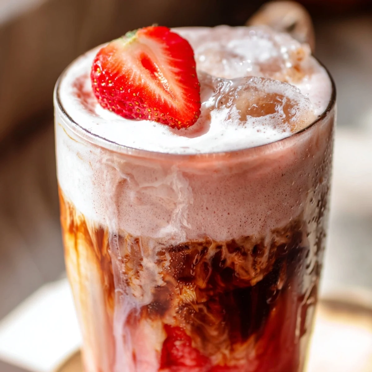 Last July, my air conditioner died during a heatwave and I found myself camped out at a friend's apartment just to survive. She handed me this pink speckled glass, something between a milkshake and coffee, and suddenly the 95-degree afternoon felt almost bearable. I watched the coffee swirl through the strawberry cream like clouds moving across a sunset sky and knew I had to learn how to make this magic happen myself.